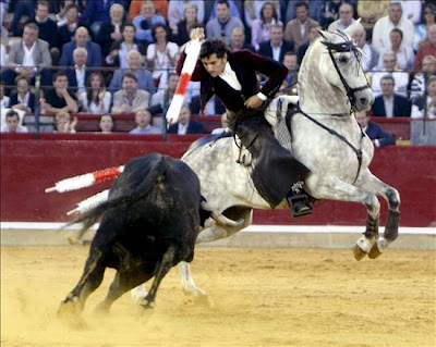 Para parar un toro: el caballo tiene que tener muchísima fuerza, tener la agilidad de doblarse con los toros muy cortito, porque todos los caballos no se doblan ahí en ese sitio. Y luego para mí, tiene que tener que la habilidad de torear muy de frente.
